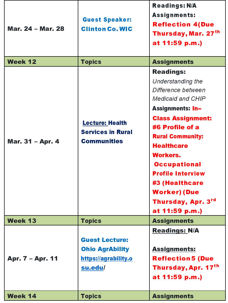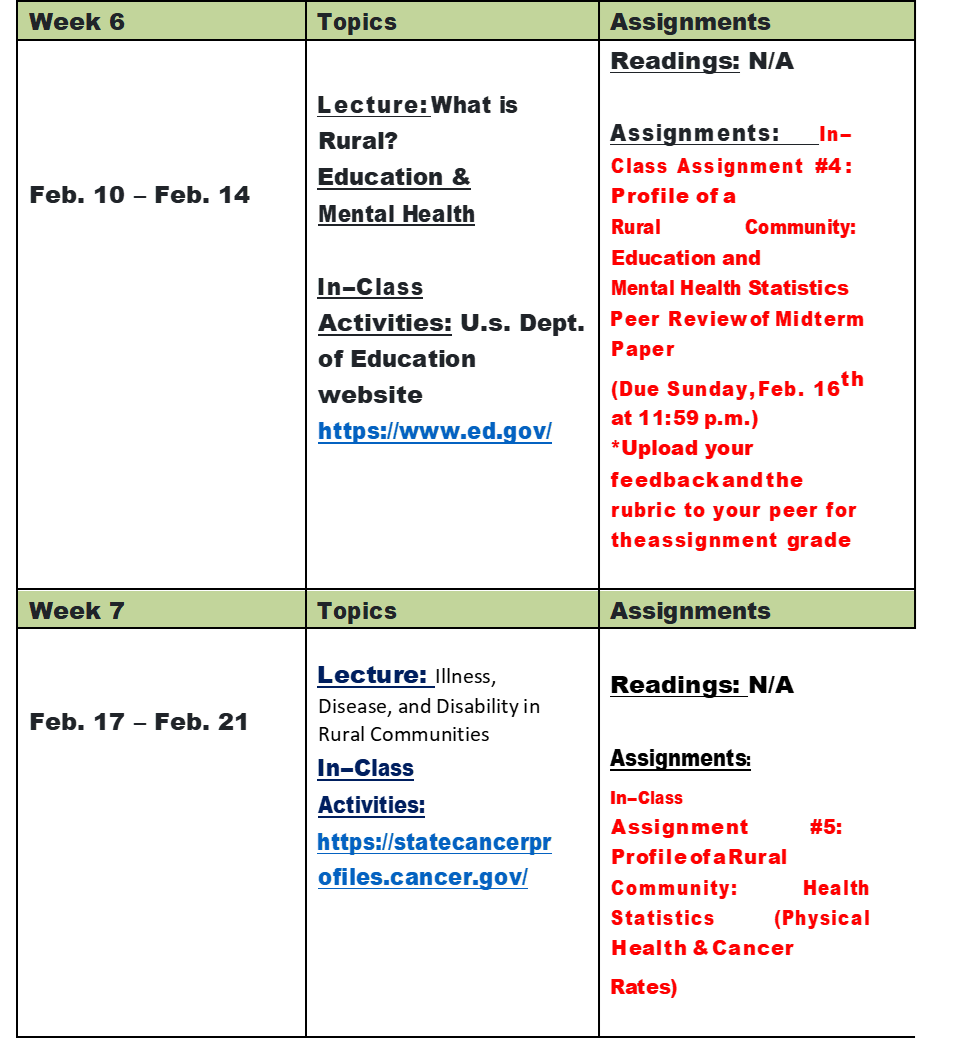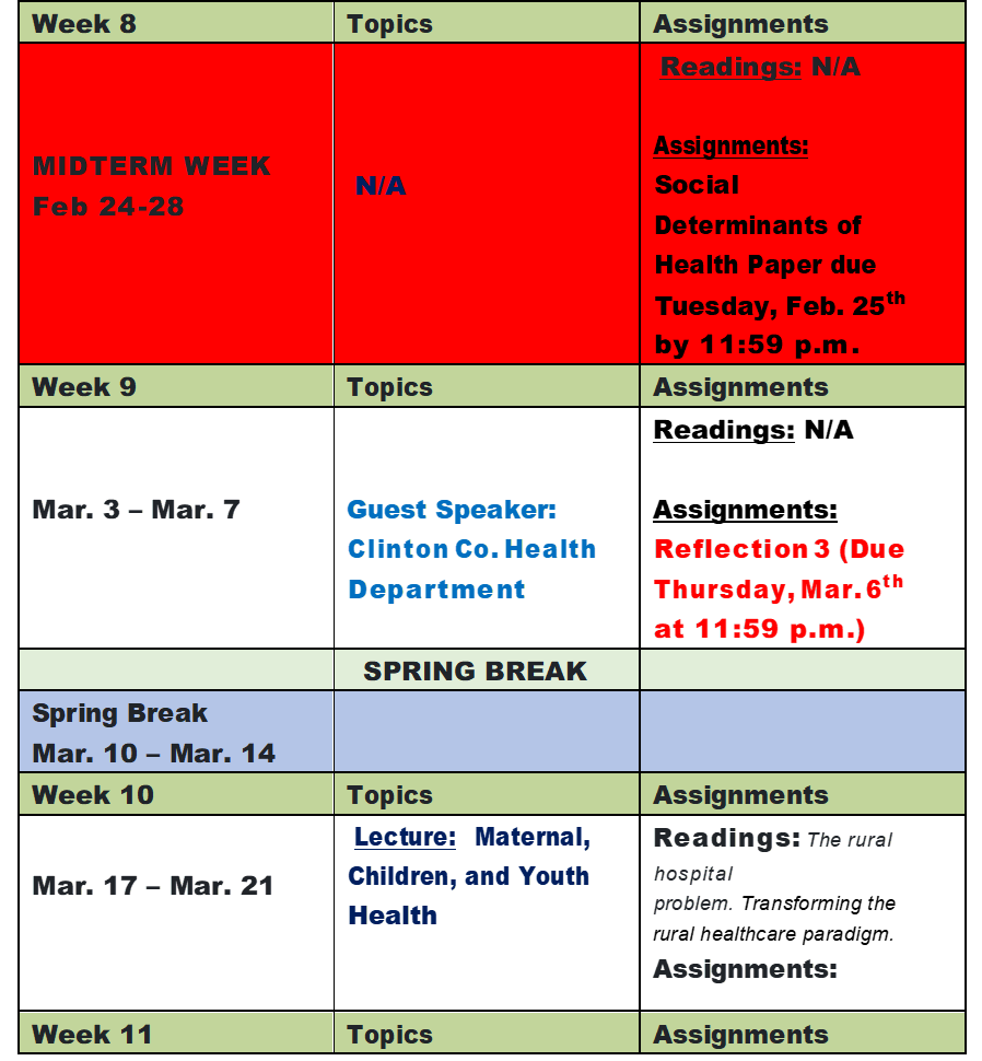 - Demonstrate an understanding of the unique healthcare issues facing individuals and families in rural contexts